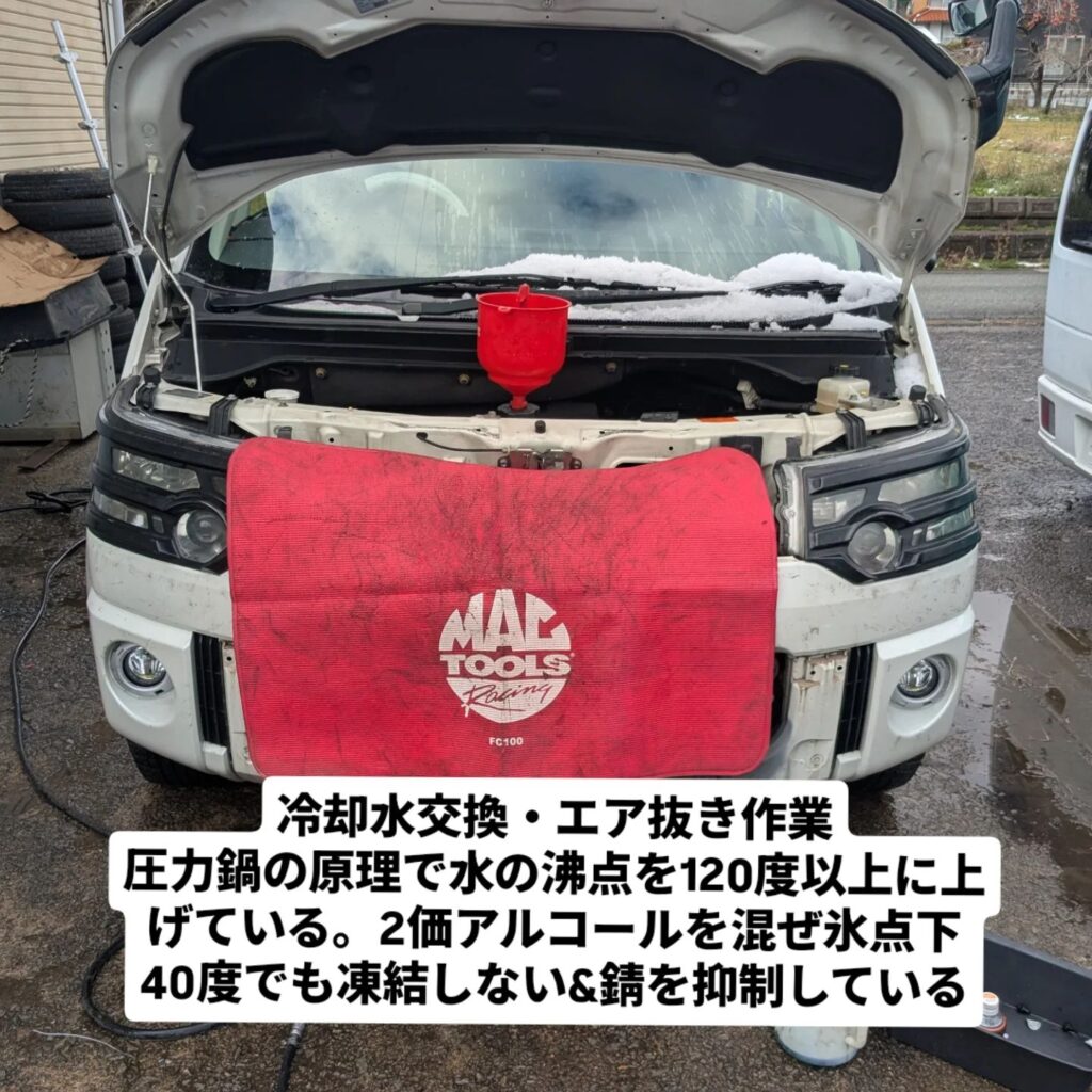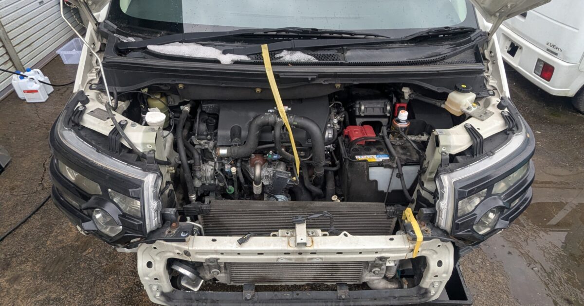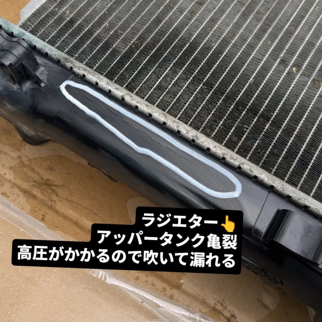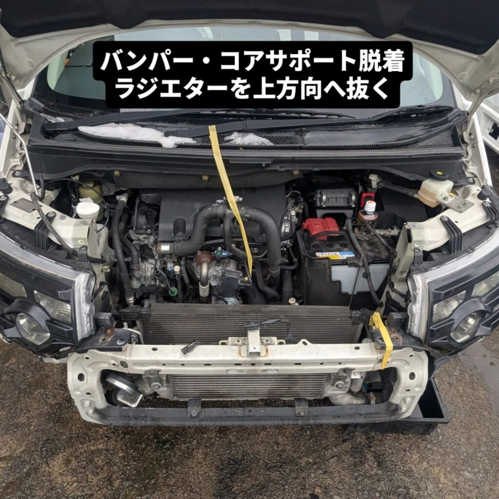 ラジエター交換になります。工数がかなり多くビックリしましたが、作業して納得。バンパーの作りが複雑で、コアサポ脱着も必要です。