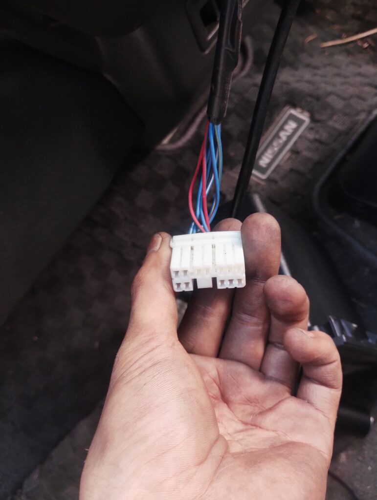 車両からマツダハーネスが逆になった物が生えていて、そこに右側のハーネスが刺さりオーディオに入ります。配線配置もマツダハーネスとは全く異なります。