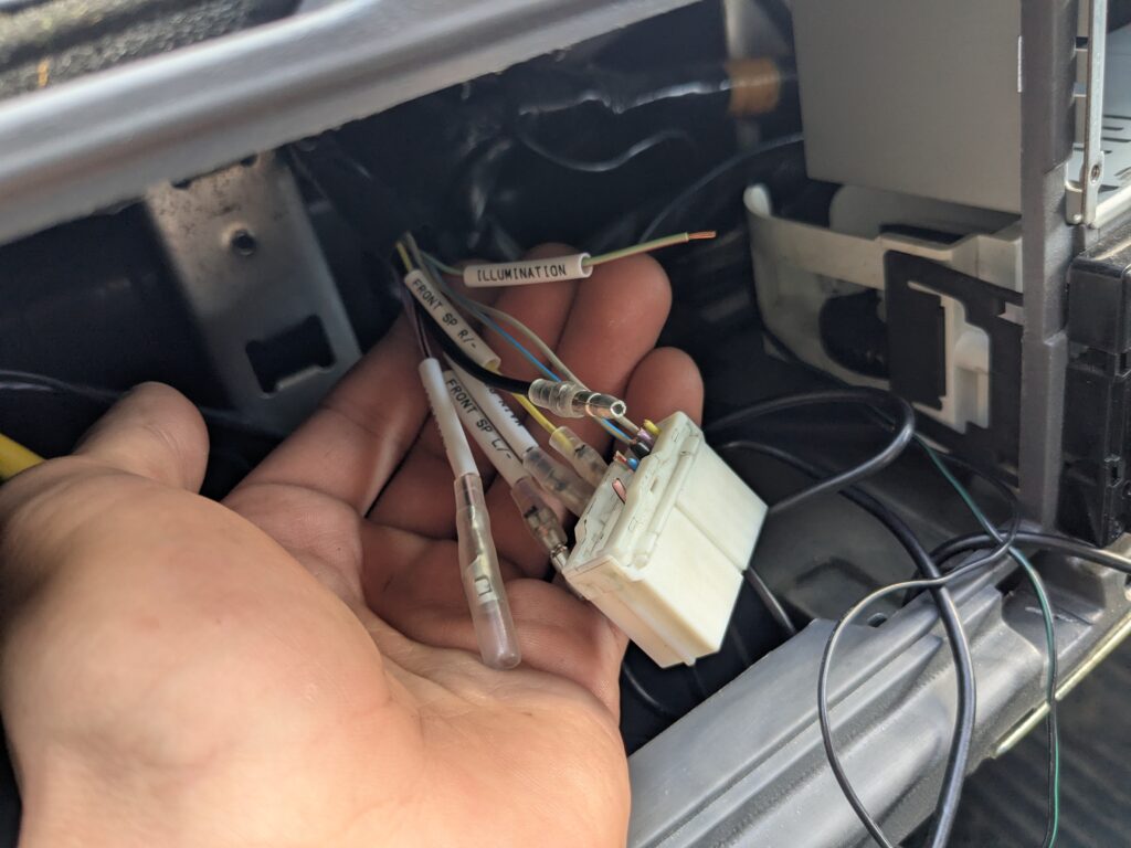 私は純正ハーネスをオーディオ手前で切断し手繋ぎしました。
