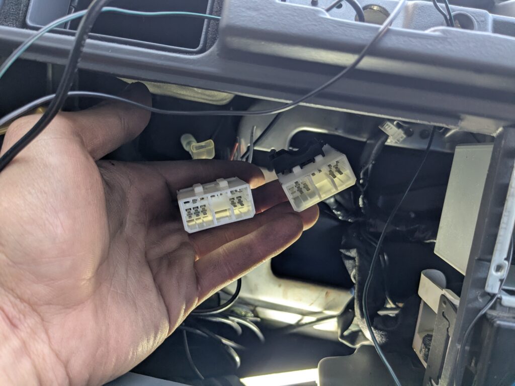 右が車両側ハーネス。要はひっくり返したようなカプラーになっています。